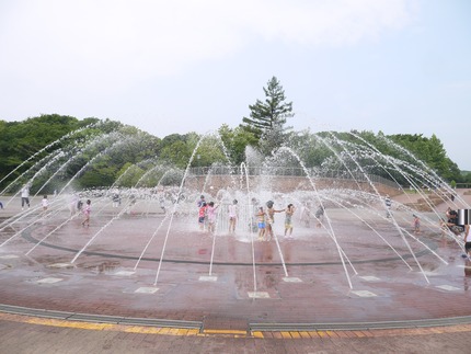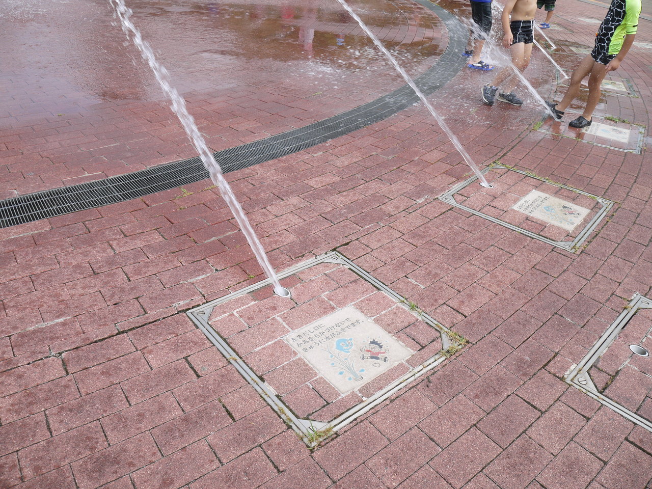 その中央広場の地面には、なんと水が噴き出す仕組みがあるのです!