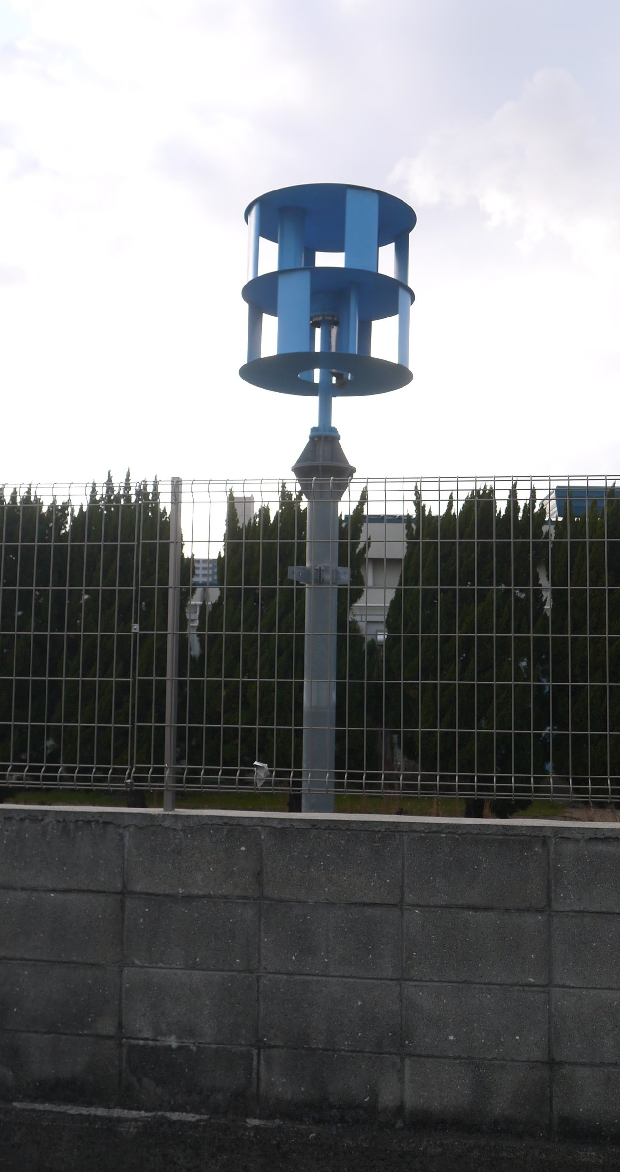 幸町の国道170号線(外環状線)を通りかかると、大阪府立大学工業高等専門学校(府大高専)の敷地内に風力発電装置のようなものがあるのを発見しました。