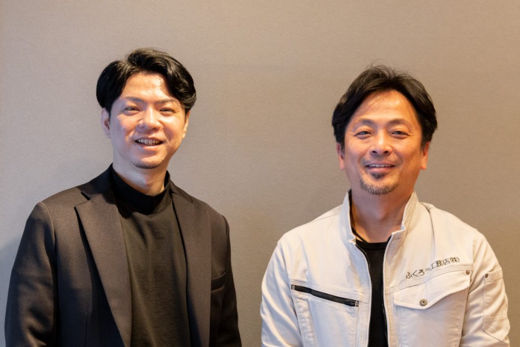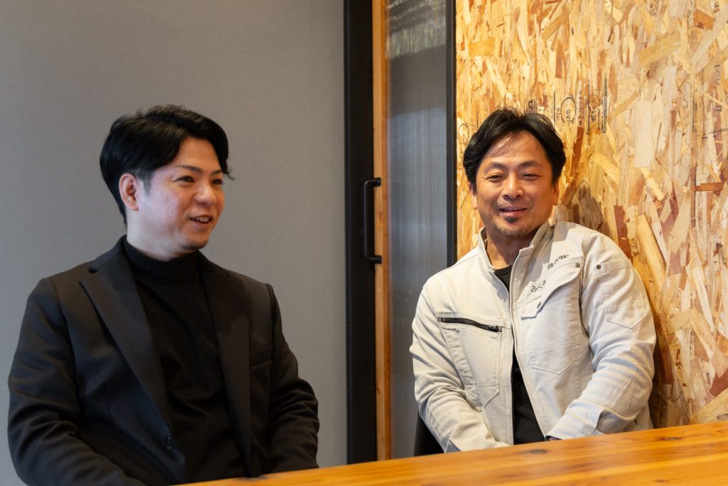 今回お話を聞かせてもらったのは、ふくろう工務店のスタッフさん(左)と代表の香川さん(右)