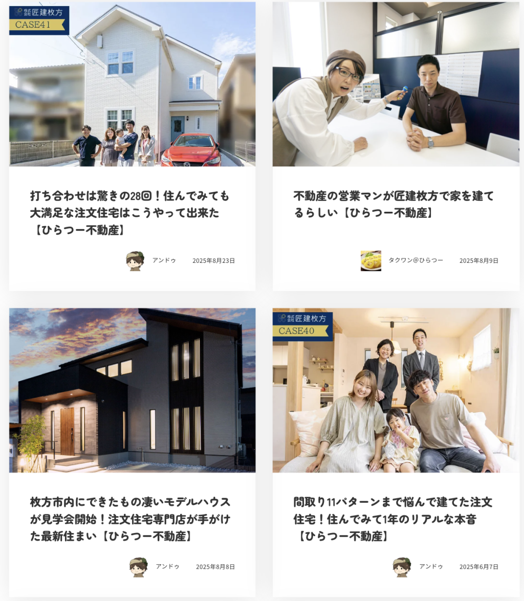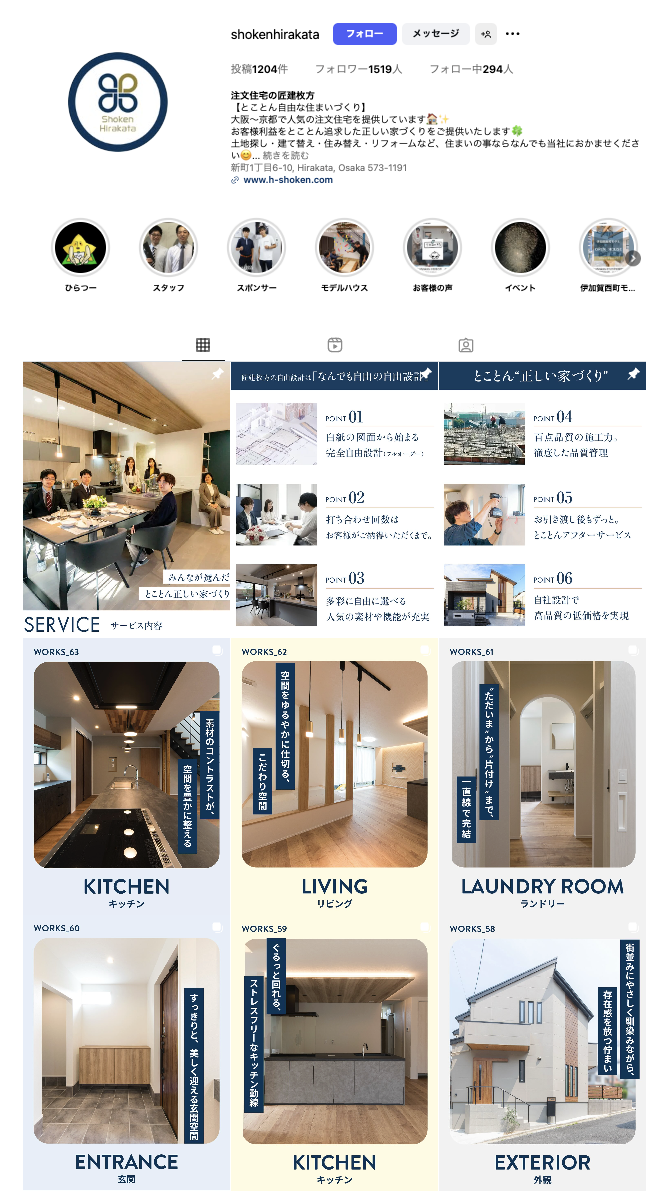 匠建枚方の公式Instagramアカウント(@shokenhirakata)では施工事例がたくさん紹介されていて、匠建枚方の公式サイトでは「お客様の声」が掲載されています。