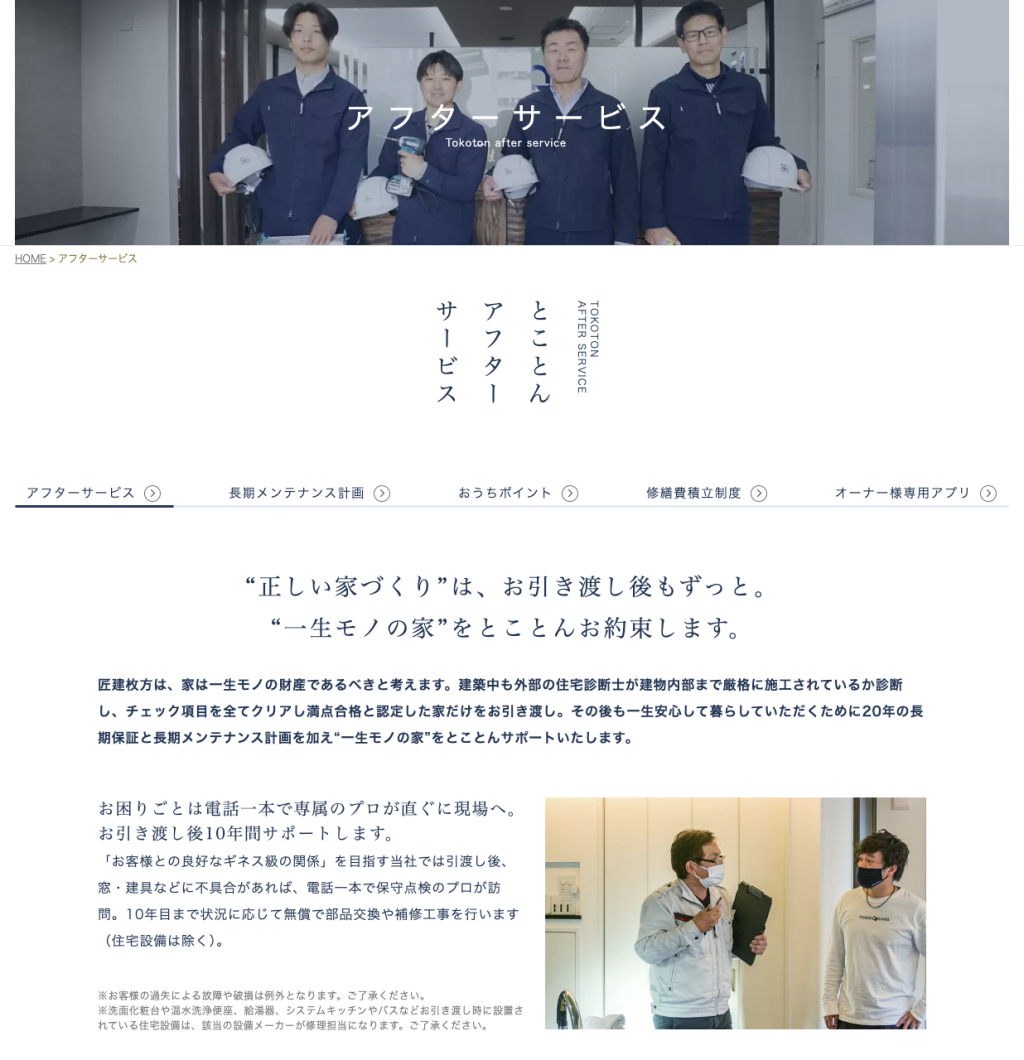 先ほどもお家のアフターメンテナンスで点検に来て頂きましたが、住んでから壊れたところや気になるところがひとつもなかったんですよね。
