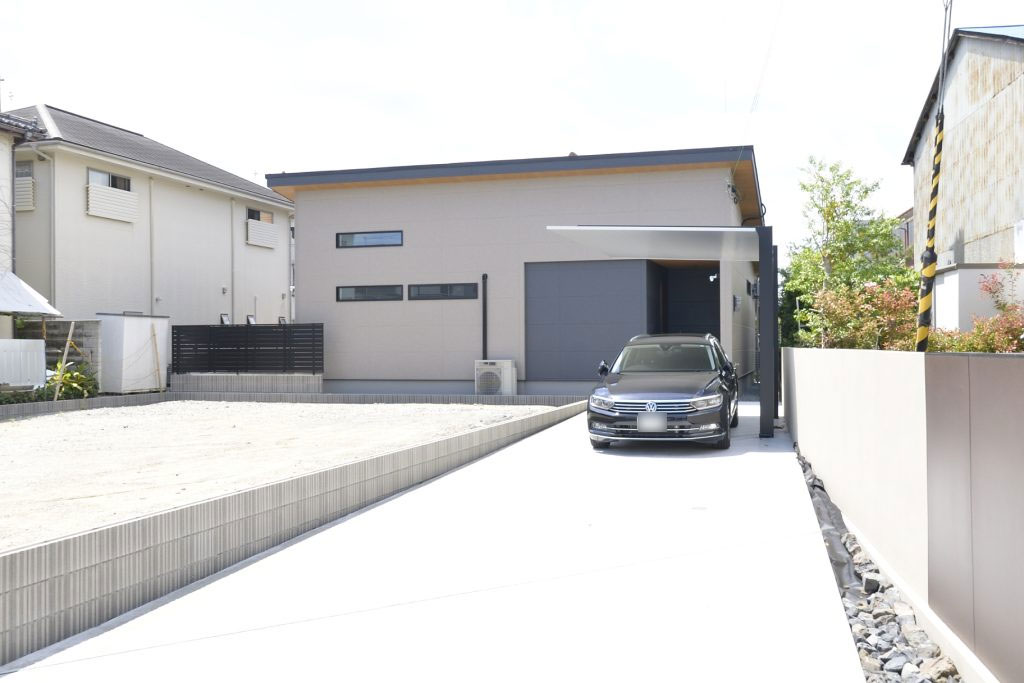 ちなみに旗竿地※は土地の形状からデメリットに感じられる方もおられますが、M様は駐車スペースを2台以上とられたいというご要望だったのでご提案させて頂きました。通路部分も道路と同じ幅員にして駐車しやすく敷地設定をしていたのもポイントです。