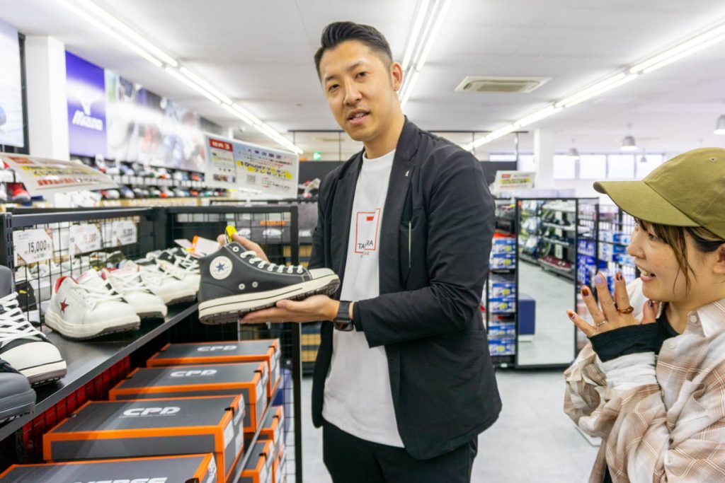 2階建てのお店なんですが、2階はフロア全面がシューズ関連商品の売り場なんですよ〜!さっそくそちらからご案内しますね♪