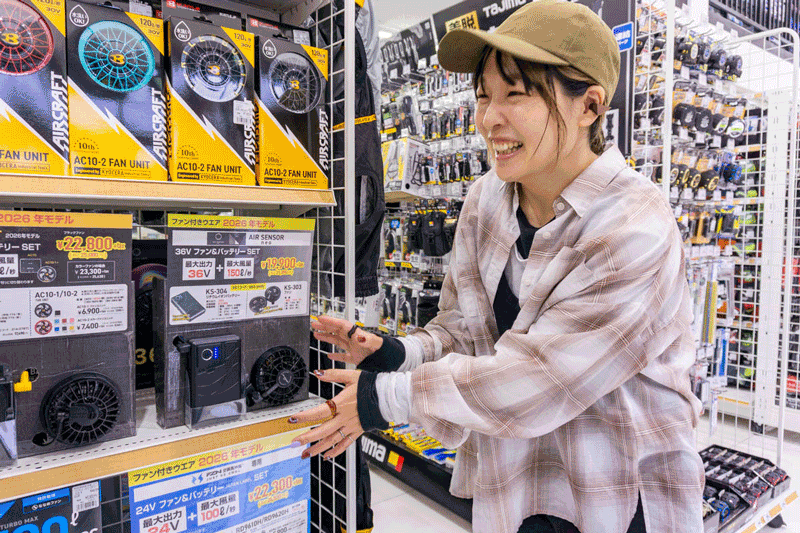 現場仕事の方はもちろん、普段使いにも人気なんですよ!ぜひ売り場でいろいろ試してみてくださいね!