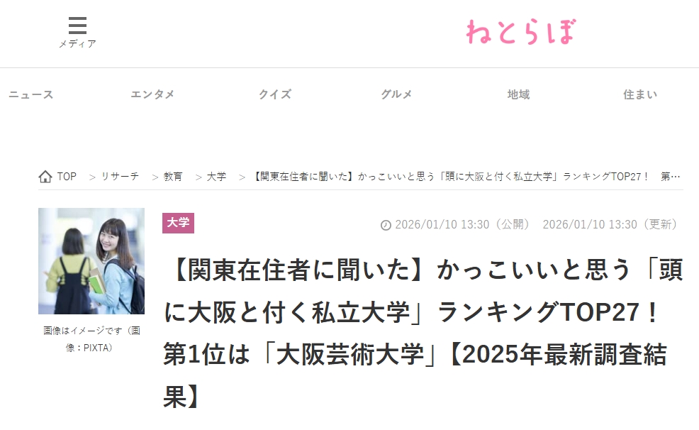 ねとらぼのサイトを見てみると、「【関東在住者に聞いた】かっこいいと思う『頭に大阪と付く私立大学』ランキングTOP27!」で大阪電気通信大学が11位にランクインしていることが分かります。