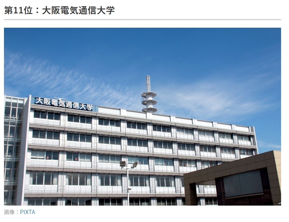 寝屋川市内にある「大阪電気通信大学」が割と上位の方にランクインしたとは、地元民としてはちょっぴり嬉しいですね。