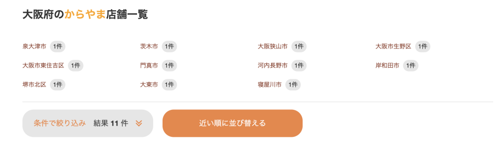 公式サイトを見ると、大阪には11店舗しかなく、そのうちの1店が寝屋川にあることがわかります。もっとあるかなと思っていたんですが、大阪には意外と少ないんですねー!