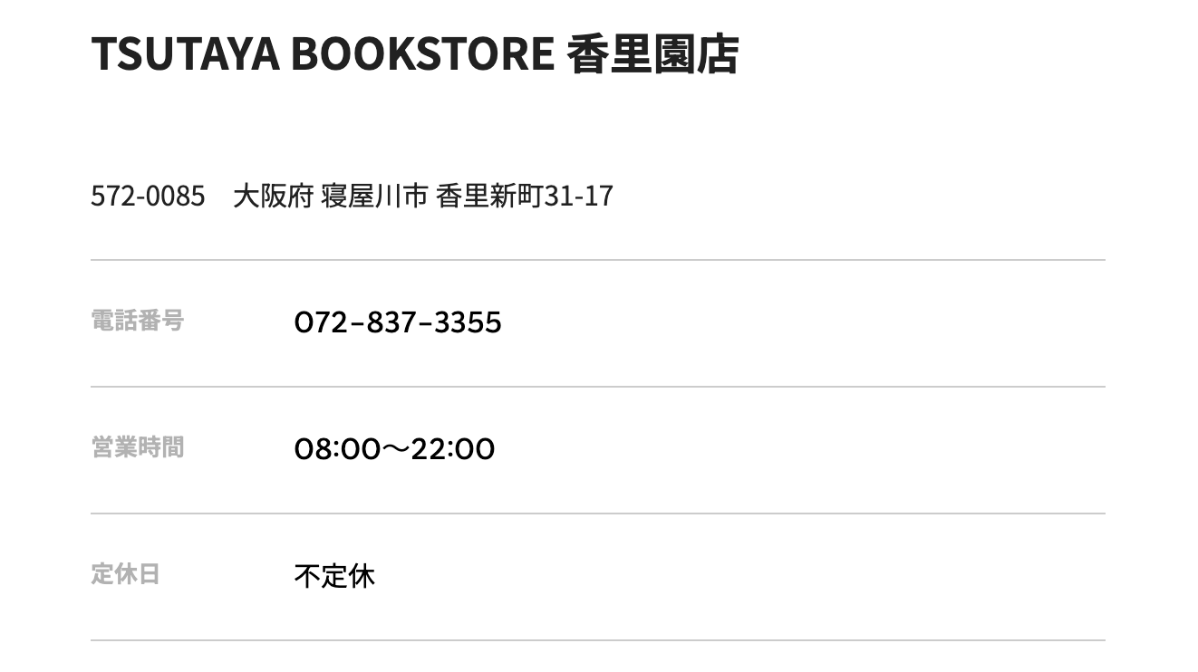スターバックス TSUTAYA BOOKSTORE 香里園店:8:00-22:00
