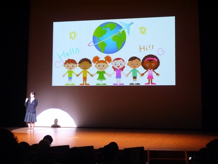 1/13(土)に行われた「第6回イングリッシュ プレゼンテーション コンテスト」の様子。アルカスホールで中学生のハイレベルな発表が披露された!
