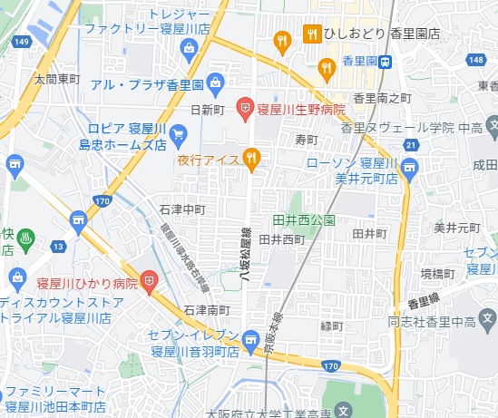 石津元町or香里南口経由。国道170号線の距離が短いルートはどっち?【寝屋川クイズ】
