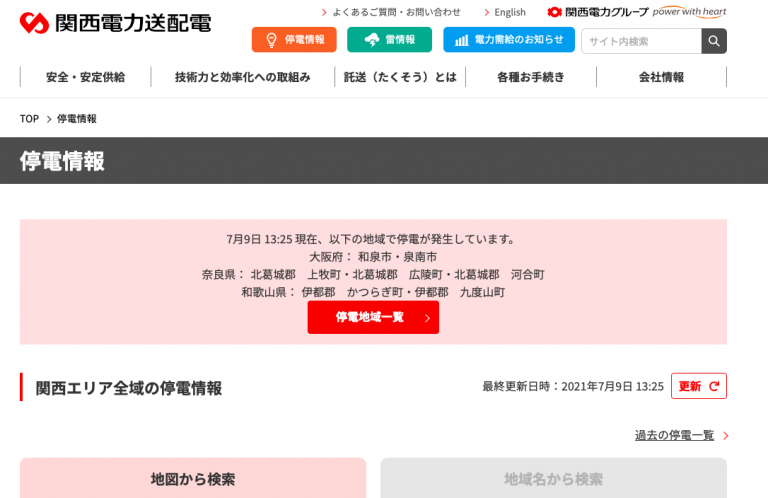 7月9日(金)12時01分ごろ、寝屋川市宝町で停電が発生しました。 関西電力送配電の公式ホームページに掲載されている停電情報によると、停電が発生した地域は宝町の約210軒です。 当初は「停電の原因を調査中」「14時00分 […] -
