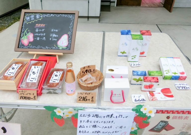 成田町に「いちご研究室」がオープンしてる。苺を水耕栽培するショールーム。苺の加工商品の販売も