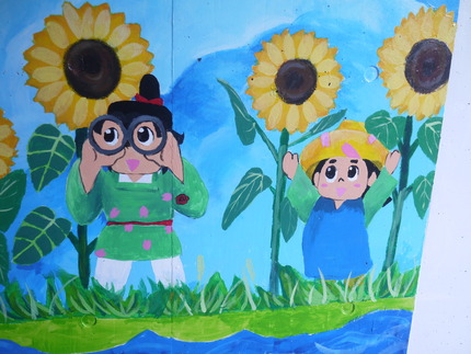 銀座橋の橋台のアートに春夏秋冬の絵が加わる!はちかづきちゃんとねや丸くんも新たに登場!
