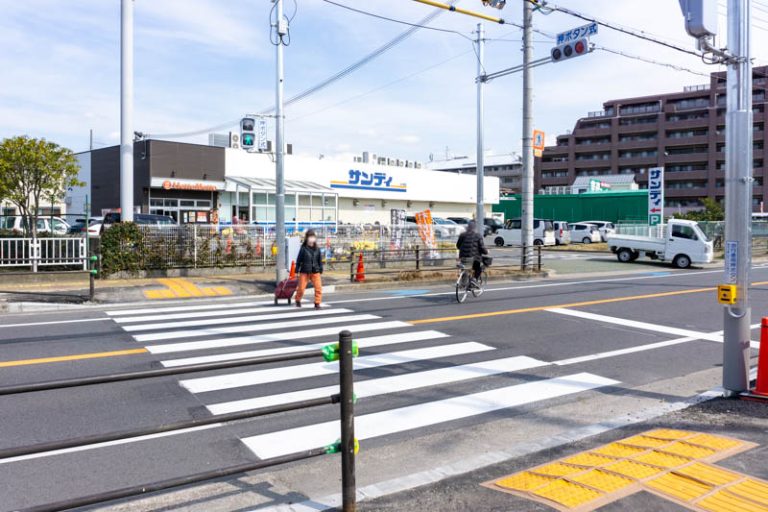丸源ラーメンちかく池田本町の交差点に歩行者用信号が設置されてる