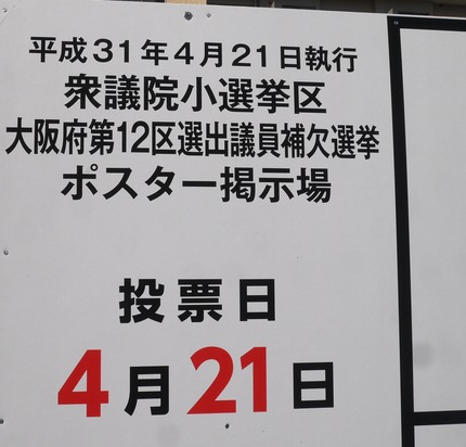 衆院大阪12区補選に4人が立候補!自民VS維新VS無所属の構図に。投票日は市会議員・市長選と同じ4/21(日)