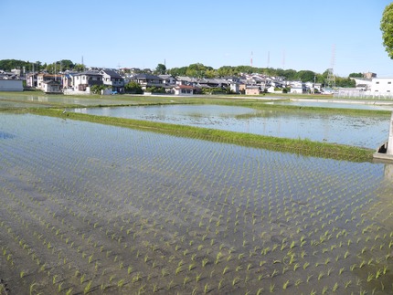 高宮1丁目(寝屋川市南部)にある田んぼの様子です。田植えの時期から1か月近くが経過し、弱々しかった稲もだいぶ太くなってきました。遠くの田んぼを見ると、水面が見えなくなるぐらいです。旧国道170号線(河内街道)を通りかかっ […] -