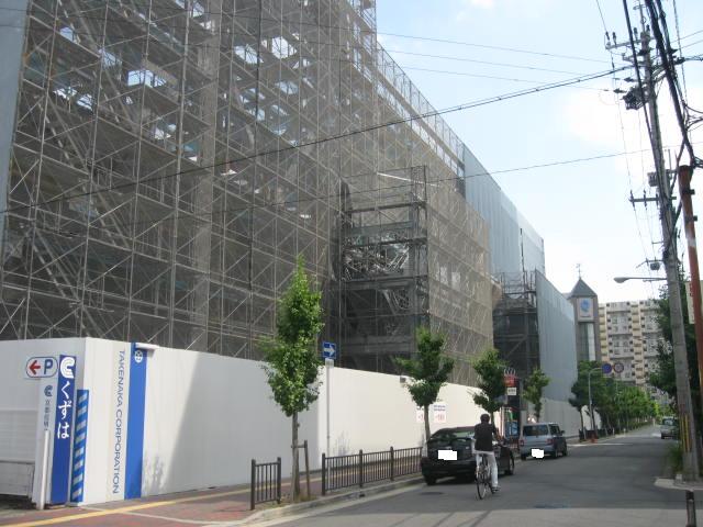 ちなみに建設中のくずはモール南館の様子はこちらです。鉄骨が組みあがってきました。奥に見えるのが2005年4月に建て替え工事が完了したくずはモール本館です。