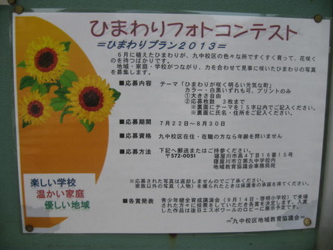 九中校区には他にもたくさんの場所に学校や家庭、地域が協力して植えられた向日葵が咲いています。この度、「ひまわりが咲く明るい元気な町」というテーマで写真を募集するフォトコンテストが実施されます!皆様応募してみませんか??
