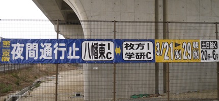 3月21日(火)20時~25日(土)朝6時に第二京阪道路の有料道路部(枚方学研IC~八幡東IC)で夜間通行止めが実施されることが分かりました。