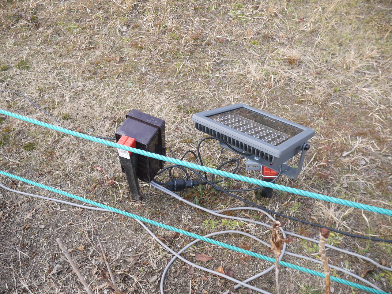 現地では試験点灯のためか、既に照明器具が設置され始めています。