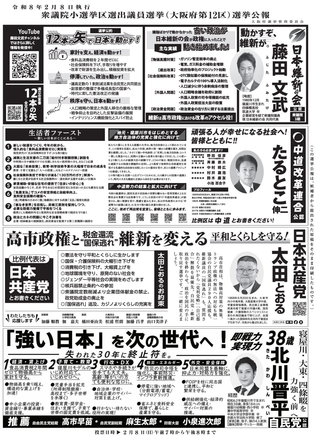 「大阪府知事選挙選挙公報」を参考にどうぞ。
