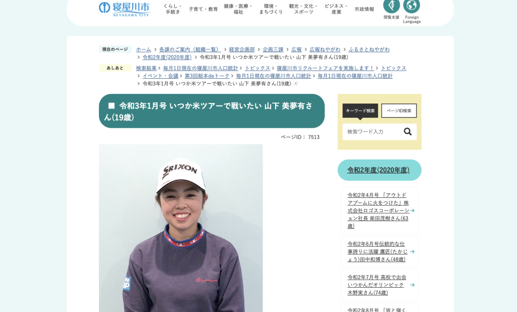 ・寝屋川市出身のプロゴルフファー・山下美夢有選手が企業とマネジメント契約を締結。現役女子高生として
