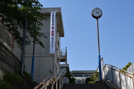 巨人やメジャーリーグで活躍した上原浩治投手の引退を受け、出身校の寝屋川市立第十中学校(成田南町)に「上原浩治先輩 夢・感動ありがとう!」と書かれた懸垂幕が設置されました。