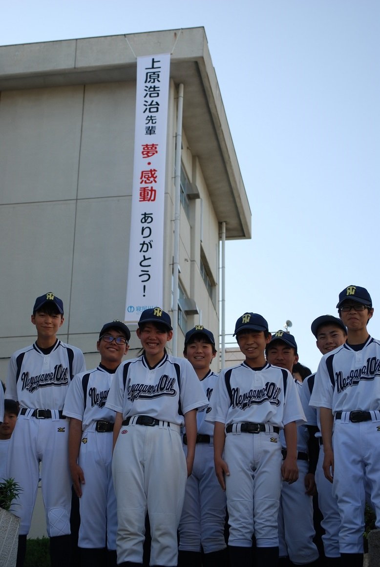 設置されたのは23日(木)午後のことで、上原さんの在籍時にはなかった野球部(2010年創部)の生徒らが記念撮影に参加したようです。