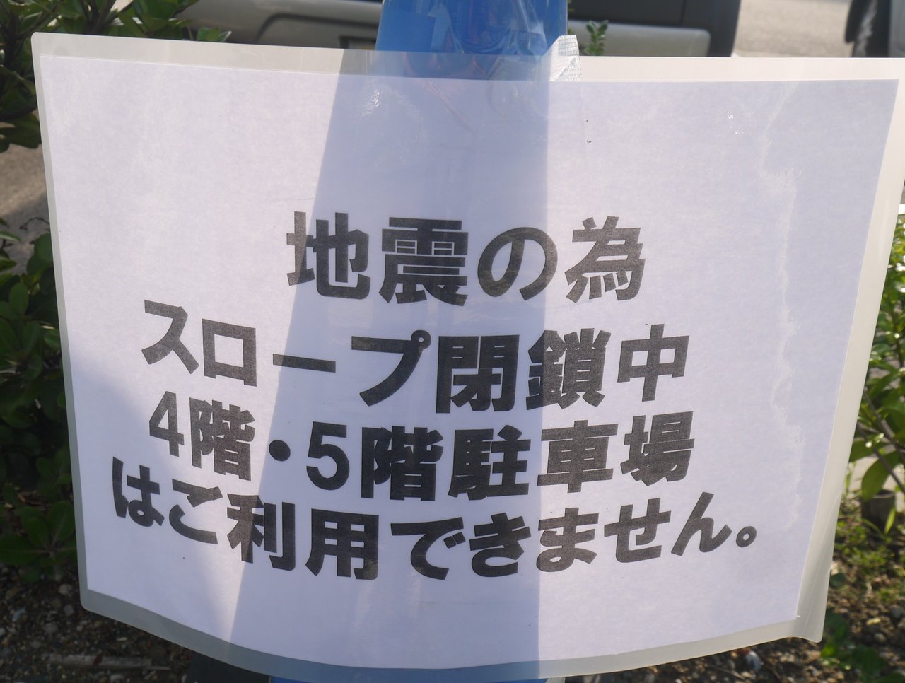 東日本大震災の時(東京都町田市の大型スーパーなど)のようにスロープが損壊しているようには見えませんでしたが、念のため点検する(あるいは余震に警戒?)ということなんですかね。