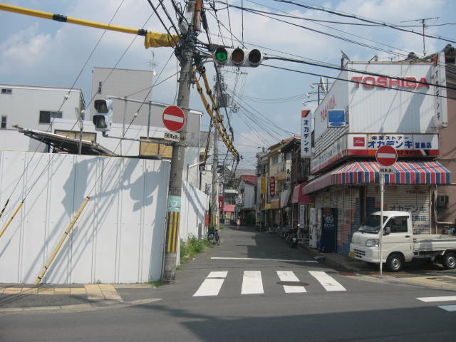 現地で北側を向いて撮影。まっすぐ行くと、木田小学校の前を通ってライフやジョーシンが入居する寝屋川デポマート方面へ向かいます。