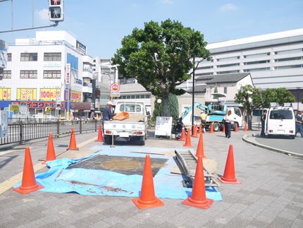 寝屋川市駅西口タクシー乗り場付近にあった街路樹が1本なくなっています。