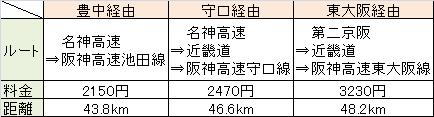 ・Cランプ:近畿道吹田方面行き⇒阪神高速