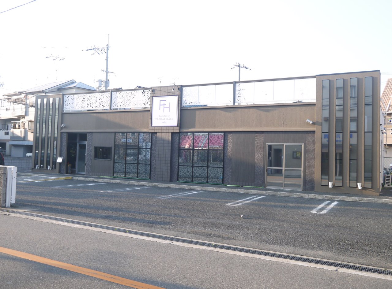 春日町(寝屋川市西部)にある葬儀会館「フローラルホール寝屋川」がリニューアルされ、茶色い外観になっていました。