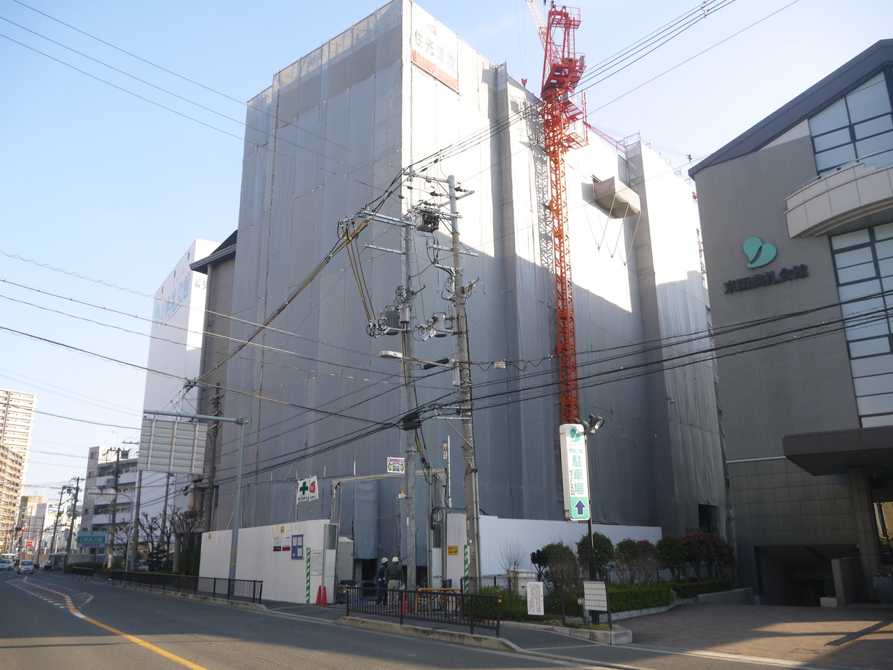 「大阪府建築物環境配慮評価」の資料(2014年1月28日に評価を実施)によると、建物は9階建ての集合住宅(敷地面積1130㎡、延床面積3590㎡)で、2015年4月に完成する予定です。