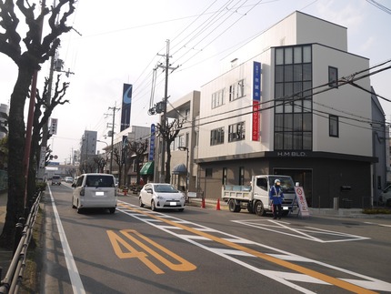 この道路の西側(パチンコダイアナやサンディ前)は前から点字ブロックが設置されているので、公共施設が多い東側でもバリアフリー対策が施されることになります。