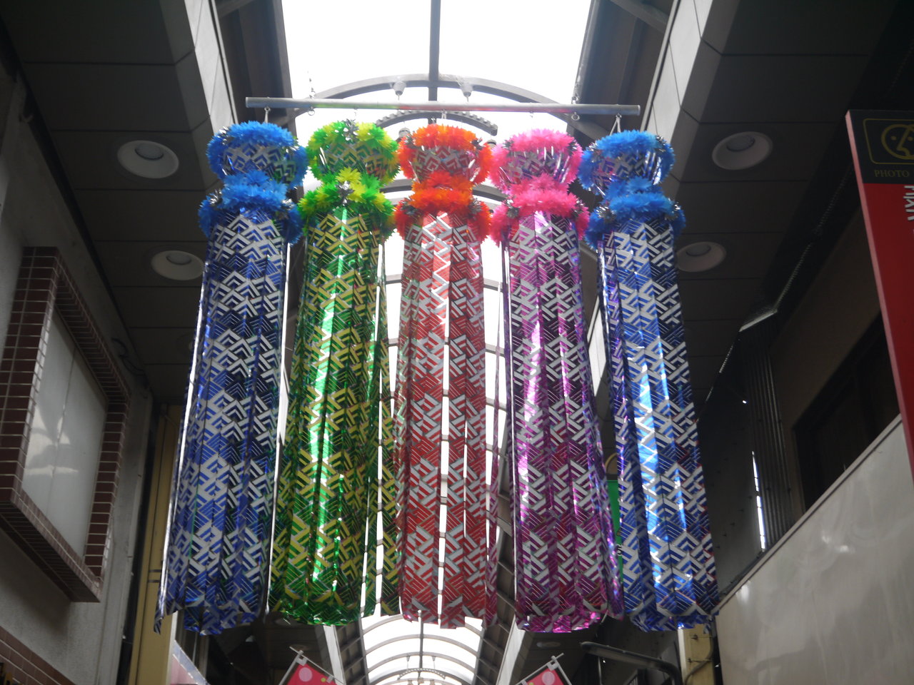 寝屋川市駅西口のベル大利商店街に、七夕の飾りが登場していました。