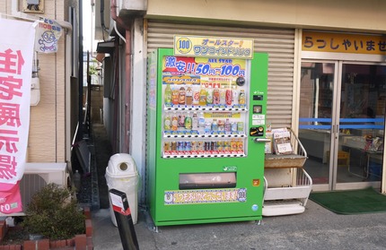 出雲町の「マート出雲」という商店前に50円から購入できる格安自動販売機が登場していました。