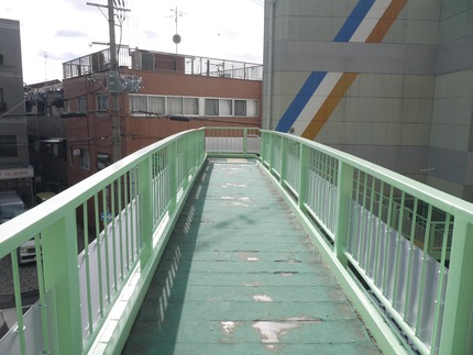 香里ダイエー本通商店街と寿商店街の入口にある国道170号線香里歩道橋で行われていた塗装の塗り替え工事が、このほど終了していました。