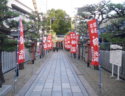 中へ入っていくと、初詣の赤い旗がたくさん並んでいました。(赤い旗には人名や団体名が入っています。)