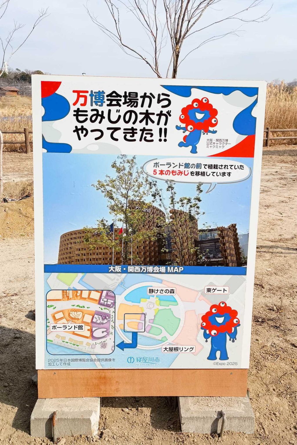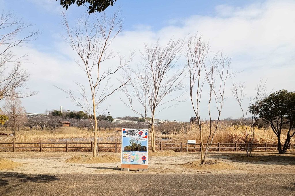 大阪・関西万博ポーランドパビリオンの「もみじの木」が打上川治水緑地に移植されています。