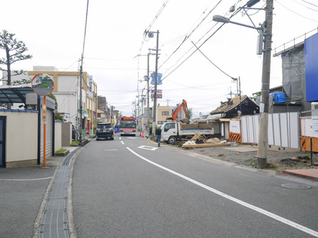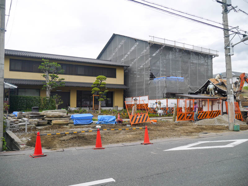 この解体工事は都市計画道路対馬江大利線の整備事業(府道18号枚方交野寝屋川線の拡幅)によるものと思われます。寝屋川南病院以東は南側、同以西は北側に拡幅する計画になっており、沿道に空き地が増えてきました。