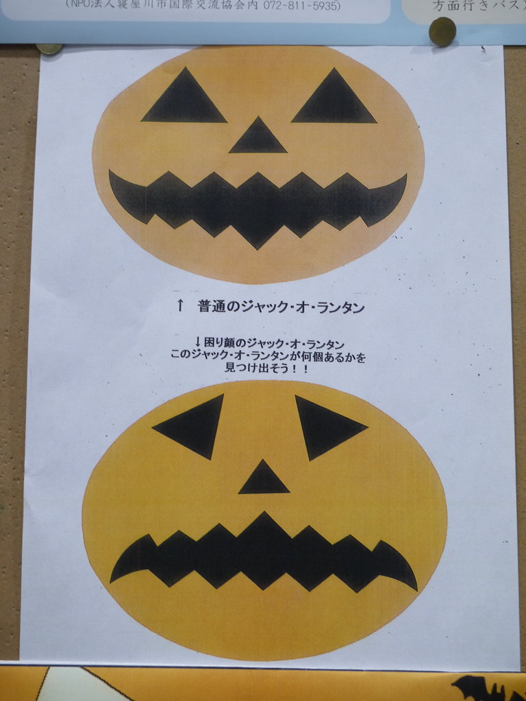 どうやら2種類の顔をしたカボチャがいるようです。店内を歩くと、製氷機などに貼られていました。(あっ、答え言っちゃった…。残りは自分で探してみてください。正解するのはけっこう難しいかも…?)