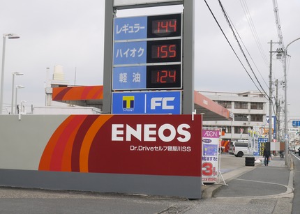寝屋川市内のガソリンスタンドを1月21日(日)に見て回ると、通常価格でだいたい144円/Lぐらいのところが多かったです。