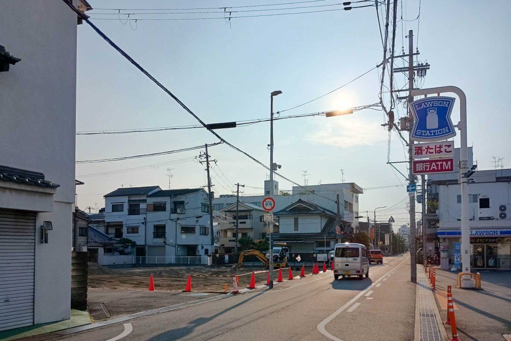 数日前に前を通りがかったとき、作業をしている工事関係の人の姿や、重機が何台かあるのを見かけました。