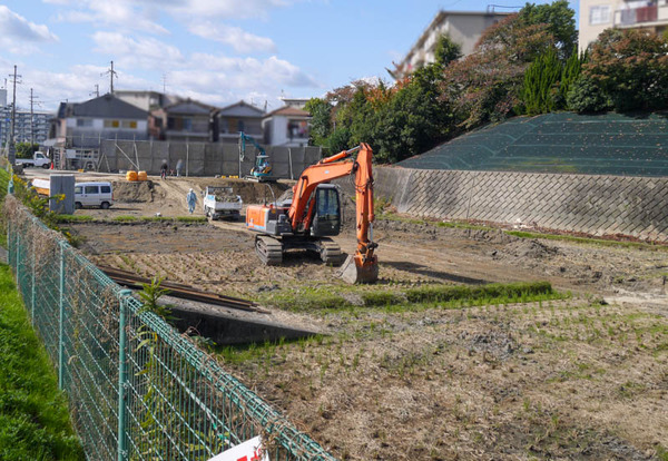 池の瀬町(寝屋川市北東部)の田んぼで宅地開発工事が始まっています。