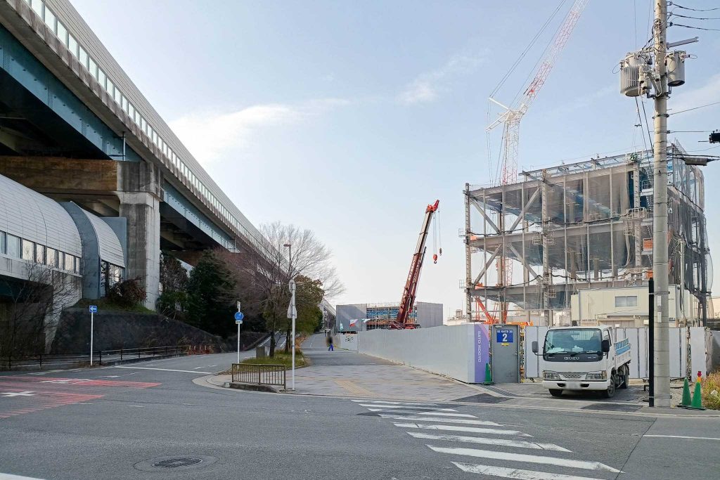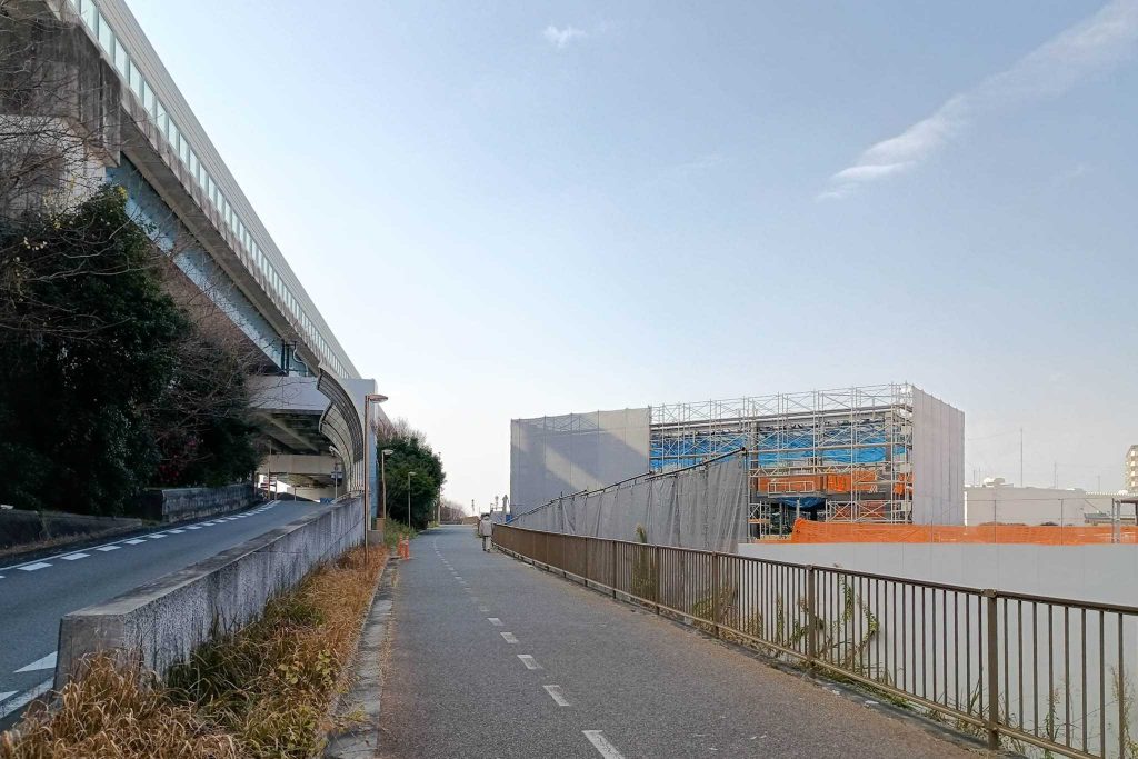 サイクルラインを進んだ奥のところにも、建設中の建物が見えました。
