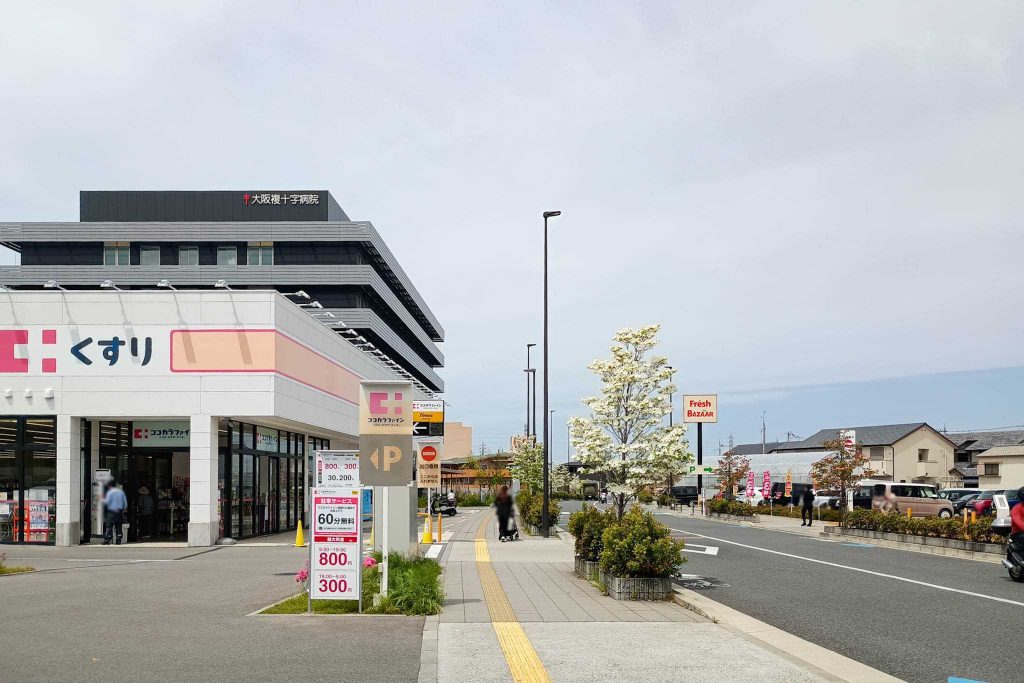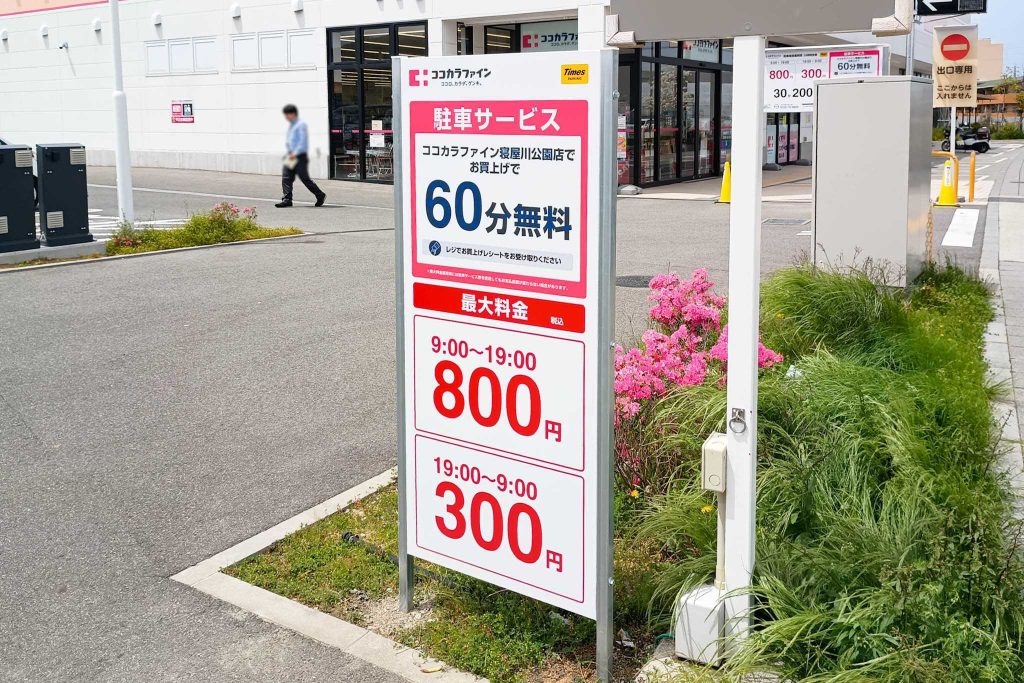 寝屋川公園駅近くの「ココカラファイン 寝屋川公園店」の駐車場が新システムになっています。
