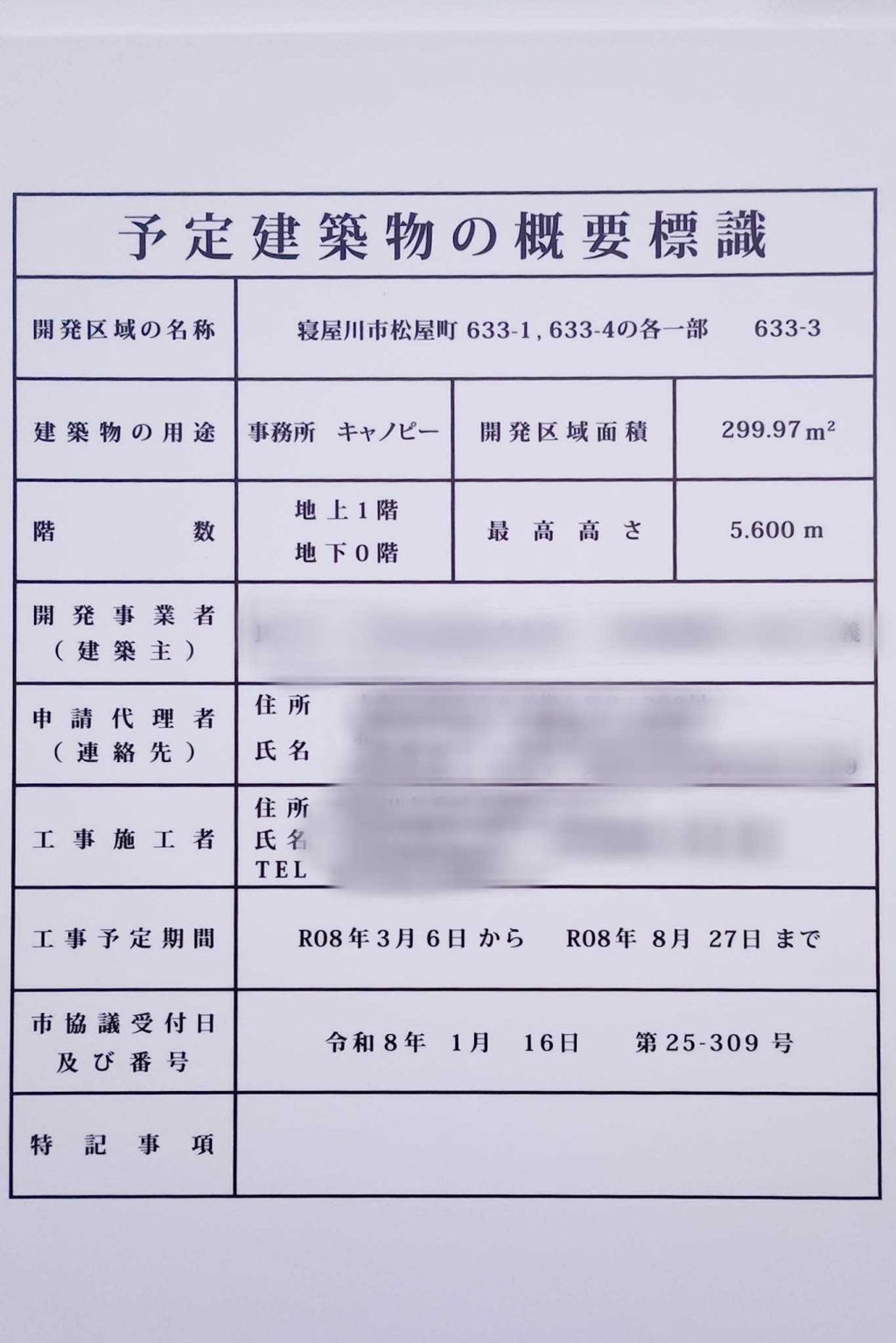 上記によると、事務所を作る工事なんだとか。工事予定期間は3月6日から8月27日まで。