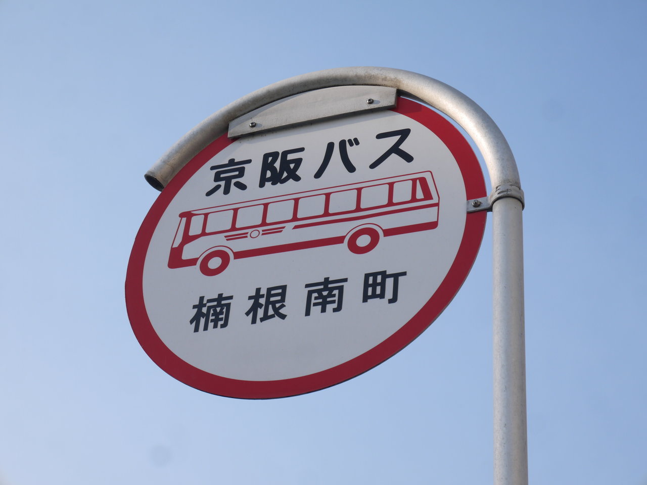 府道21号八尾枚方線(中木田交差点)と国道170号線(楠根交差点)のちょうど中間ぐらいにある住宅街のバス停で、3月末までは両方向ともデイリーヤマザキの近くにありました。