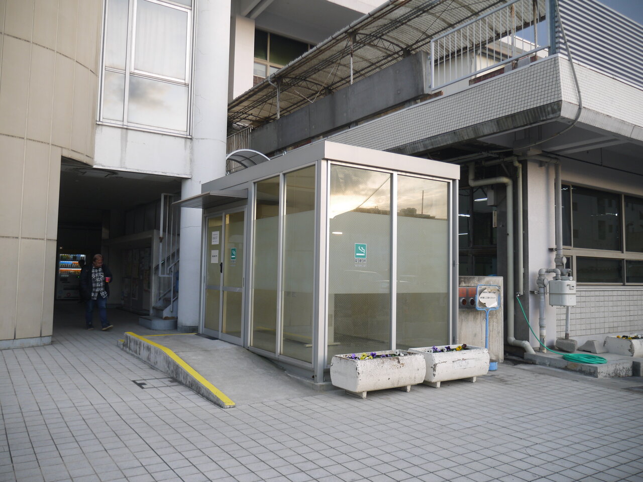 喫煙室があるのは、市役所本庁舎の正面入口前(自転車置き場横)と、